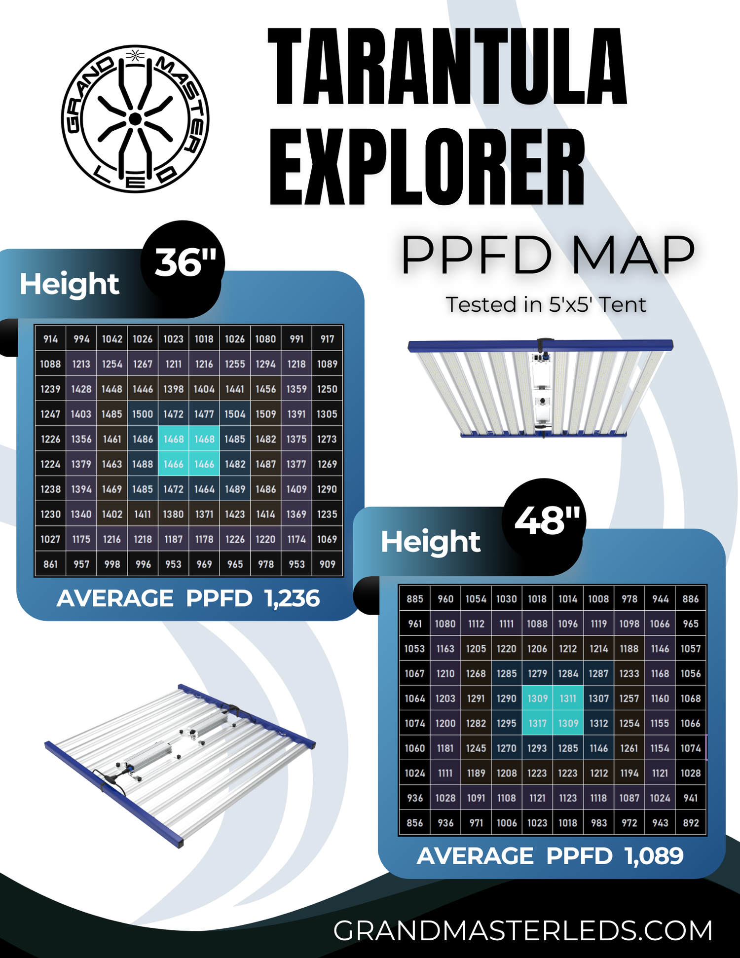 - Designed for Commercial production, vertical racks, low ceilings, and grow tents